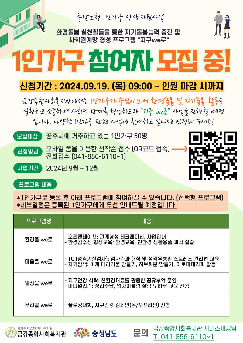 - 모집대상: 공주시에 거주하고 있는 1인가구 50명