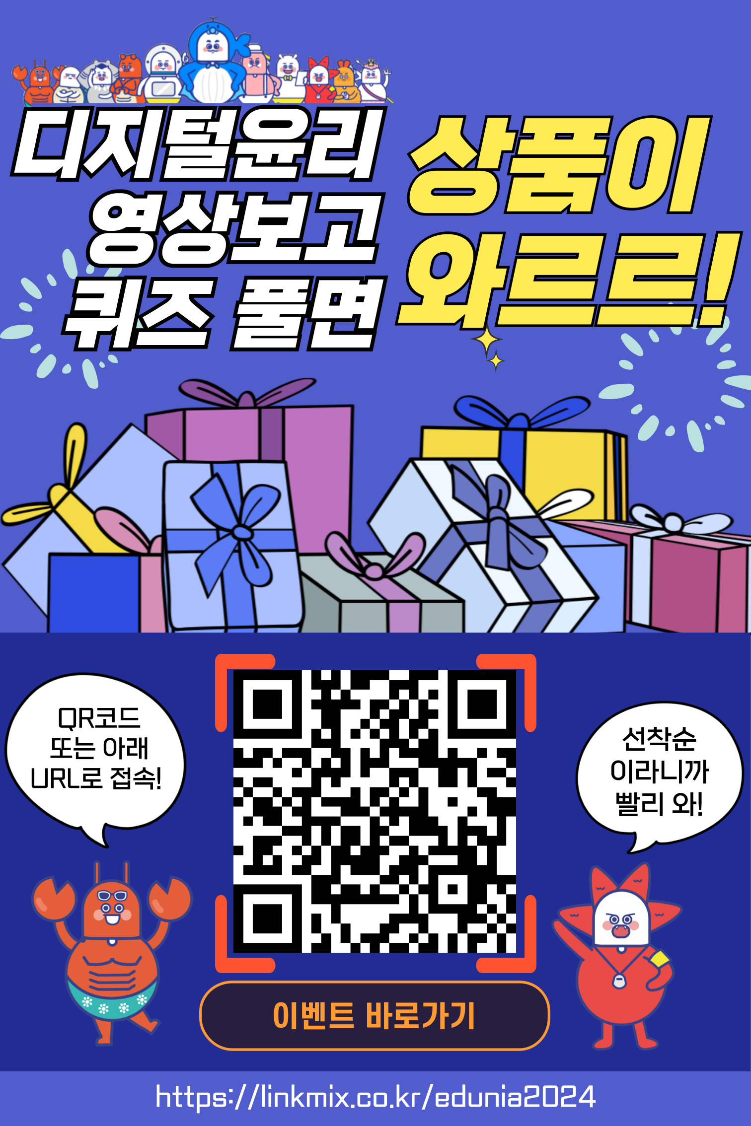 โ ํฌ์คํฐQR์ฝ๋ ๋๋ ์ฐธ์ฌ๋งํฌ(https://linkmix.co.kr/edunia2024) ํด๋ฆญ