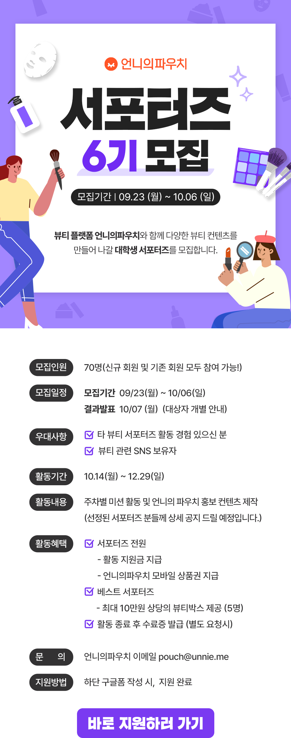 언니의파우치를 널리 알려줄 언니의파우치 서포터즈 6기를 모집합니다!