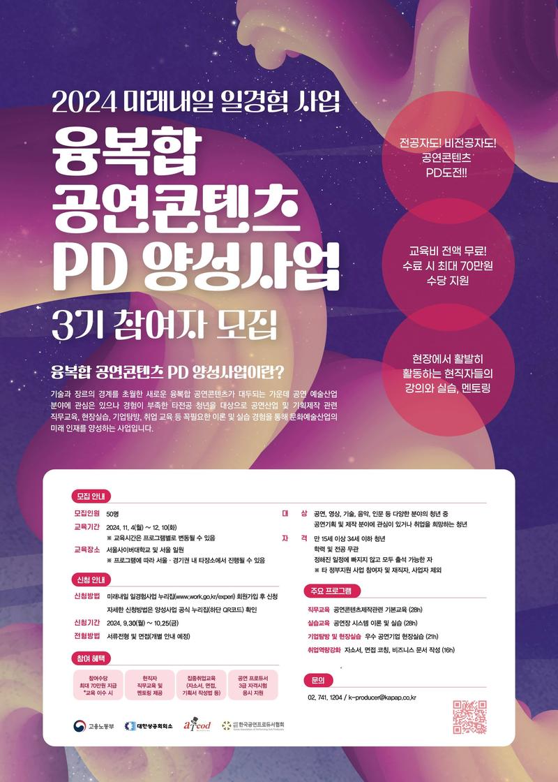 2024 미래내일 일경험 사업 융복합 공연콘텐츠 PD 양성사업