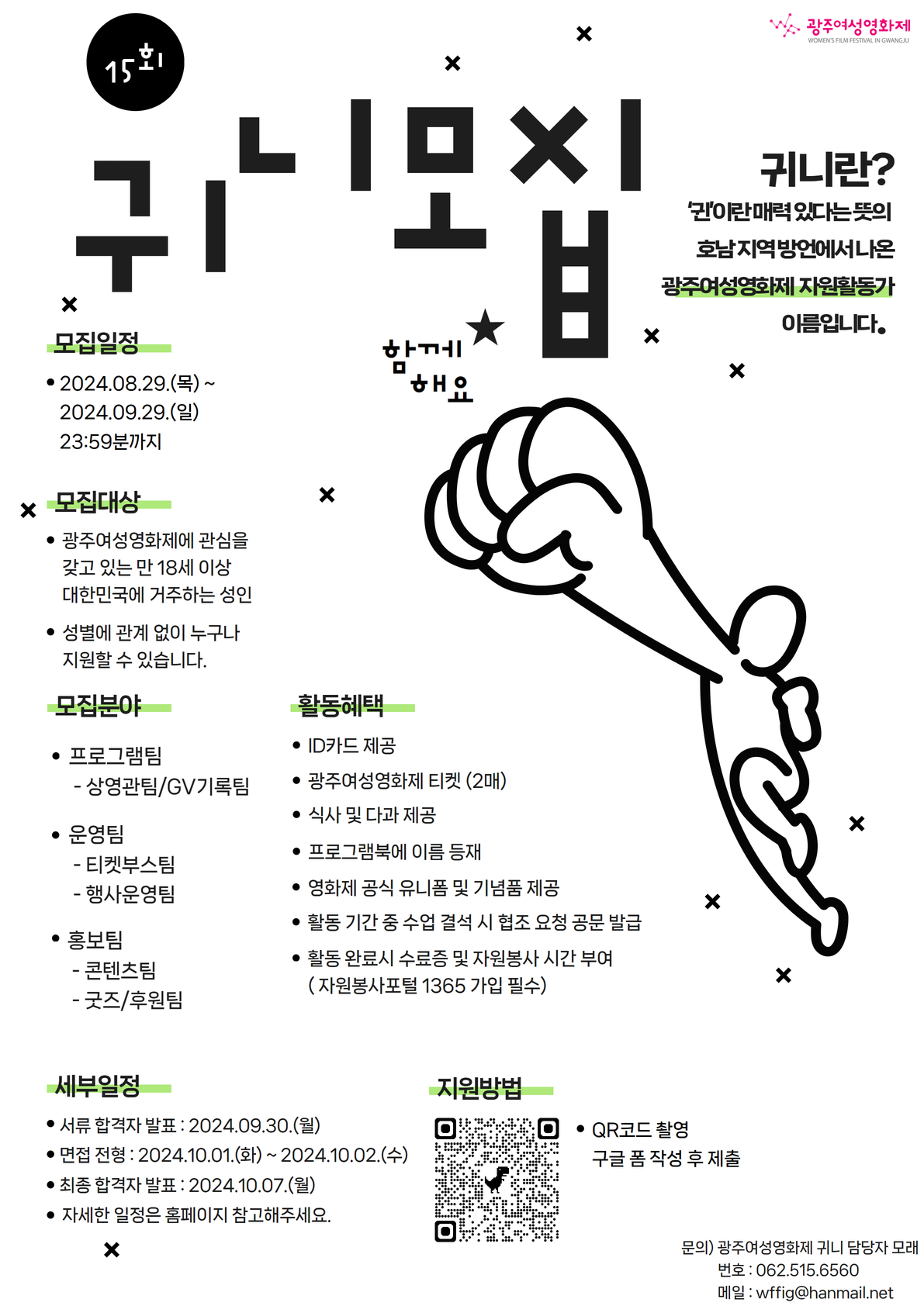 15회 광주여성영화제 귀니 모집이 벌써 5일밖에 남지 않았습니다!!😱