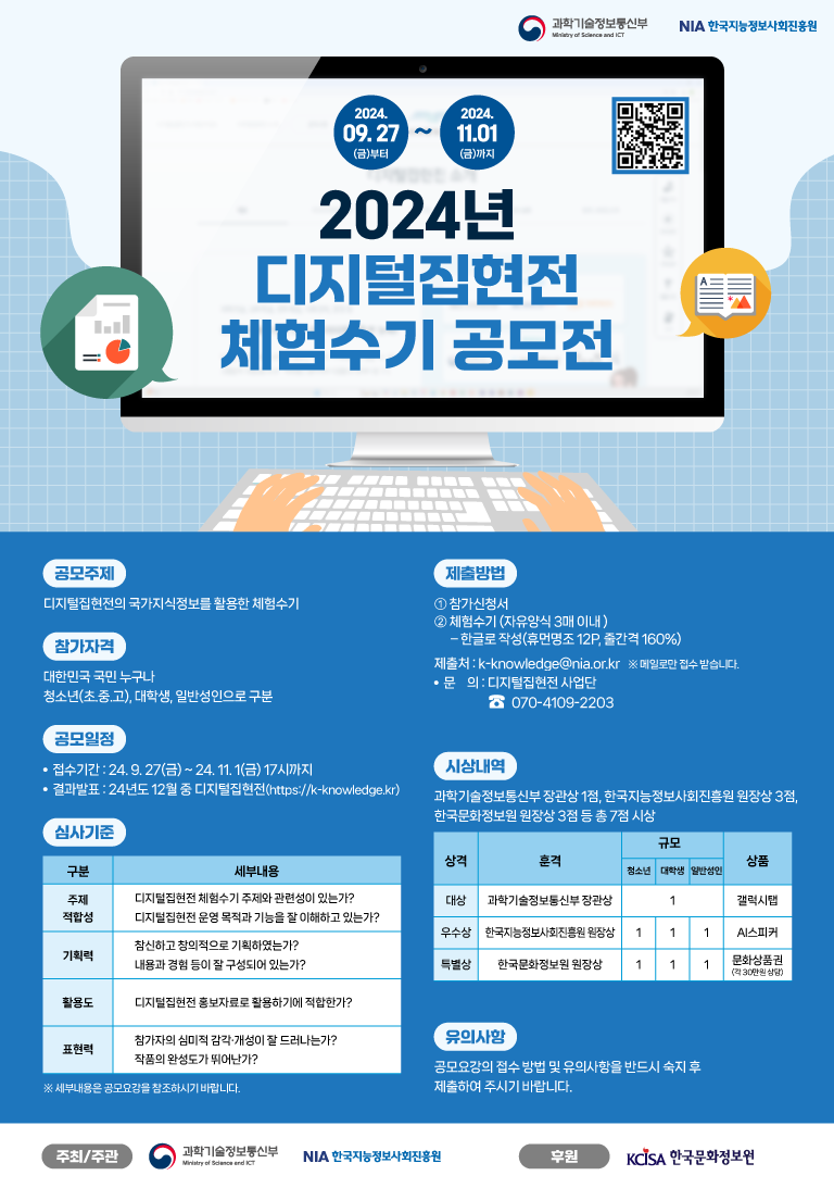 〇 접수방법 : 디지털집현전 이메일(k-knowledge@nia.or.kr)로 참가신청서 및 체험수기(자유양식) 서류 제출