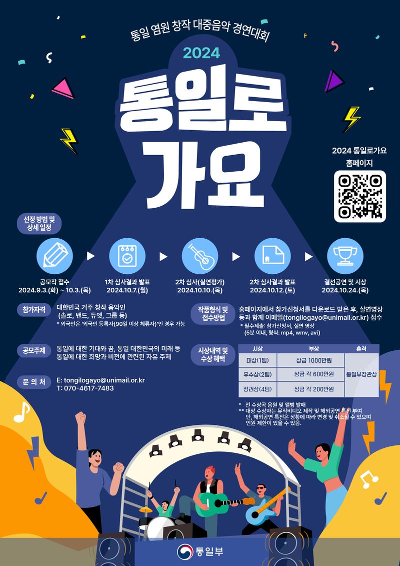 제목 : [~10/3까지 기간연장!] 통일부 주관 2024 통일로가요(통일염원 대중음악 경연대회)