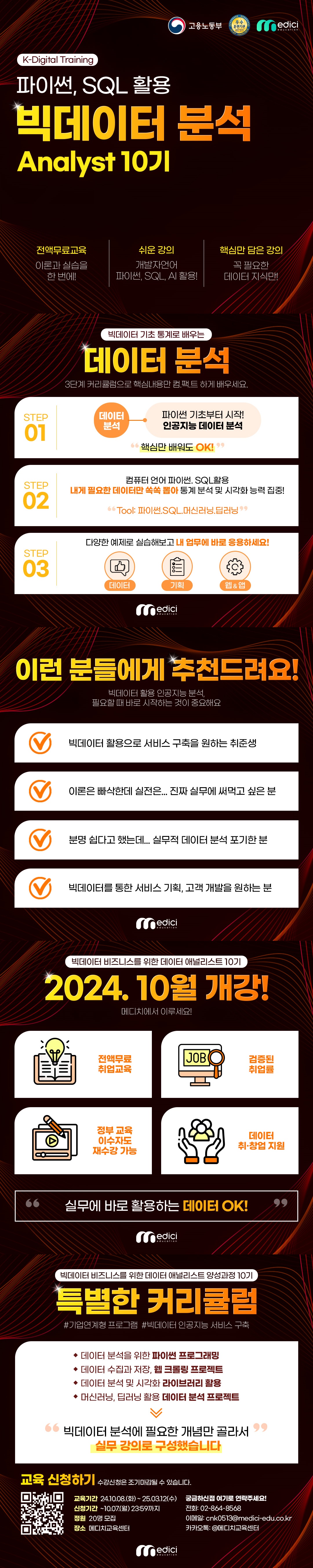 [메디치교육]빅데이터 애널리스트 10기 KDT취업교육