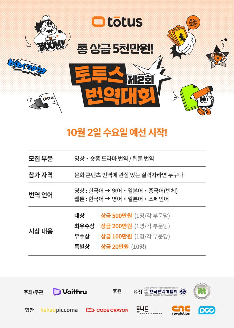오는 10월 2일 💡토투스 번역대회💡를 개최합니다.