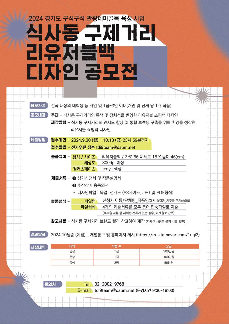 □ 제목: [2024 경기도 구석구석 관광테마골목 육성사업]식사동 구제거리 리유저블백 디자인 공모전