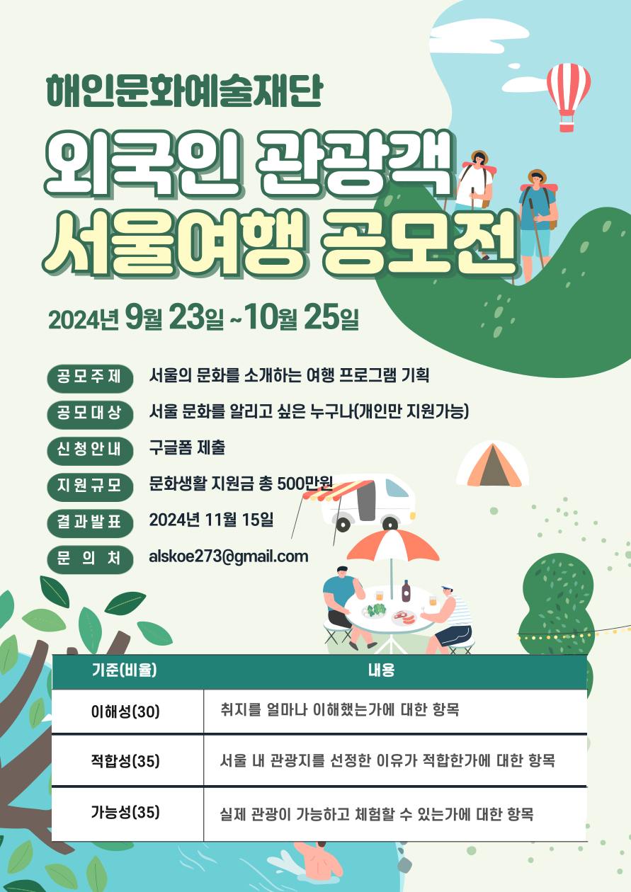 • 공모명: 외국인 관광객을 위한 서울 여행 공모전