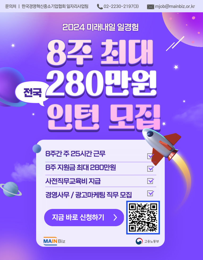 인턴급여 : 시급 14,000원 (8주 최대 280만원)