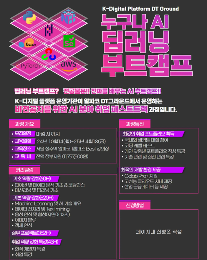 [서울/인천/경기] AI인공지능 딥러닝 데이터분석 부트캠프 국비지원 교육과정