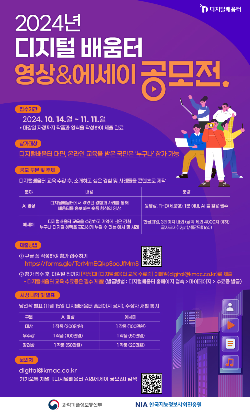 당선작 발표 : 2024년 11월 15일(디지털배움터 홈페이지 공지, 수상자 개별 통지)