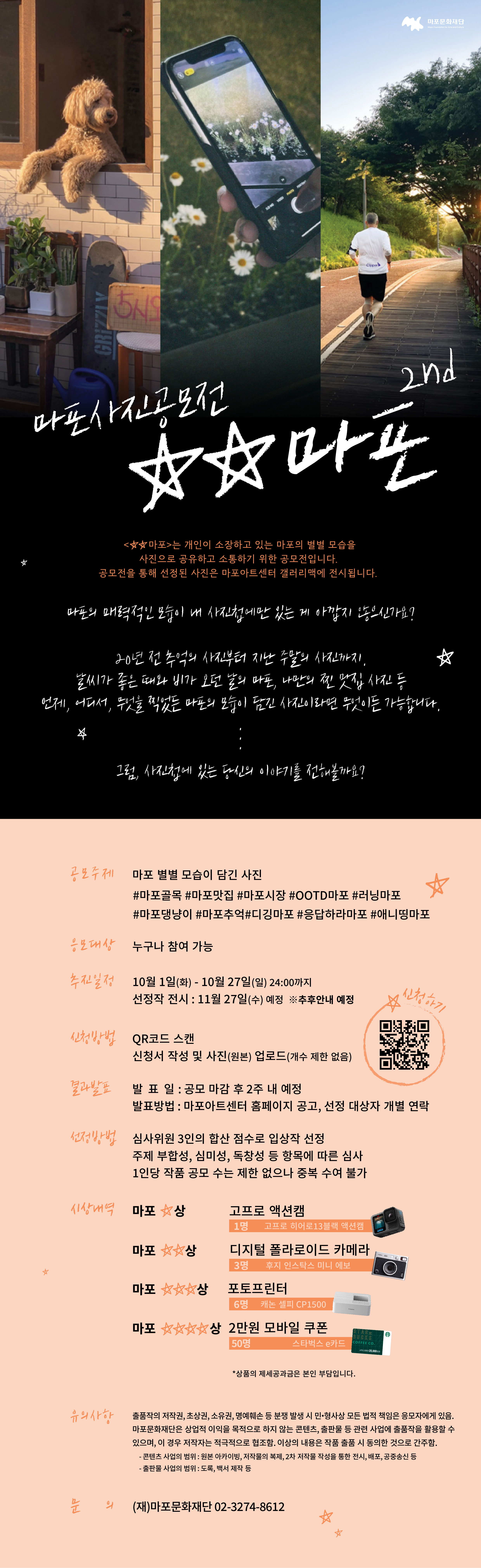 - 마포와의 연관성(주제부합성), 사진의 심미성, 독창성 등