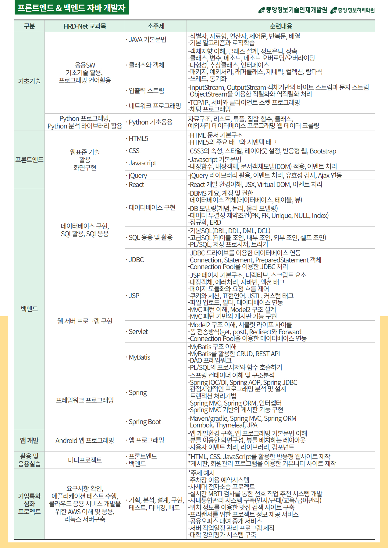 [K디지털 트레이닝] 자바(JAVA) 프론트엔드&백엔드 풀스택 개발자 올인원