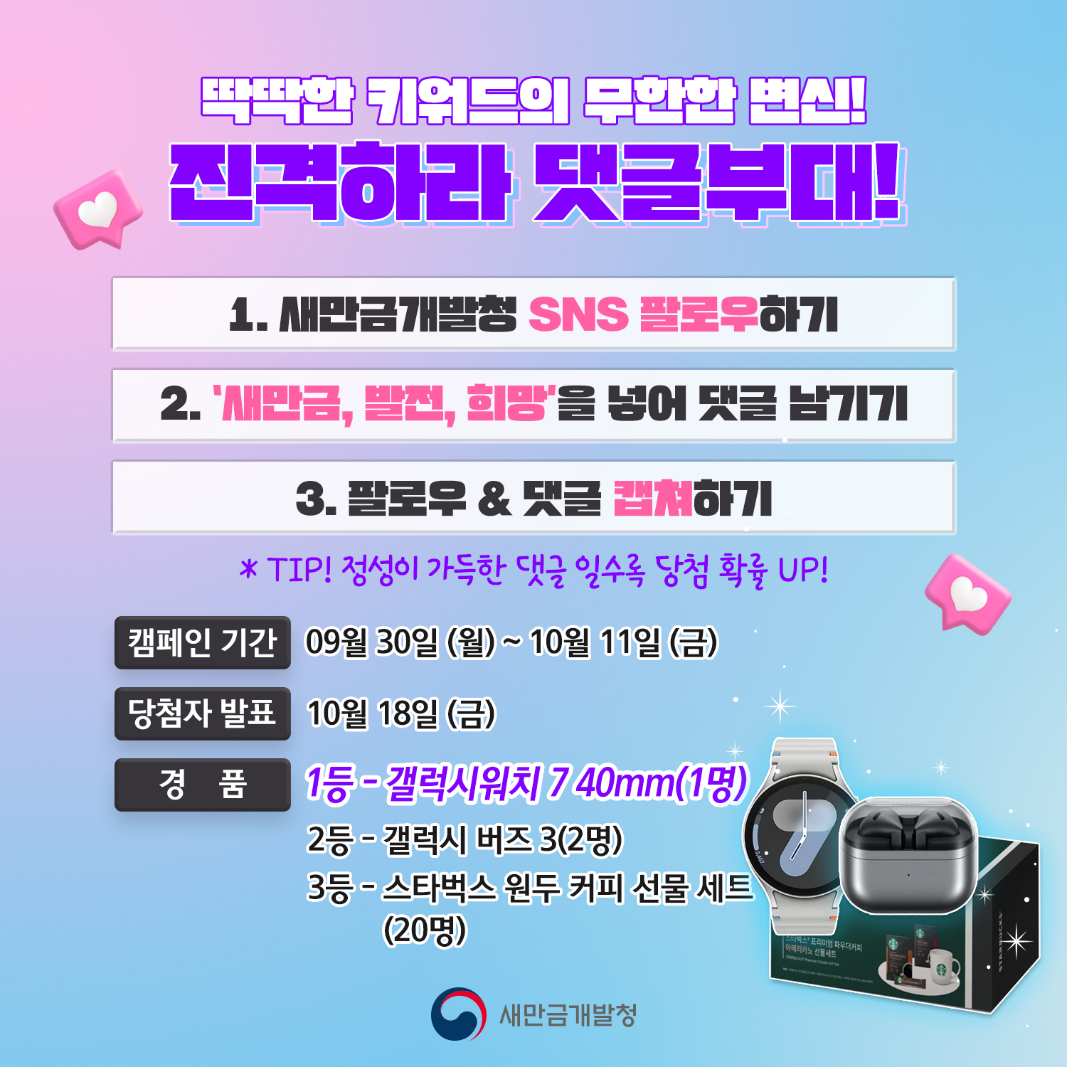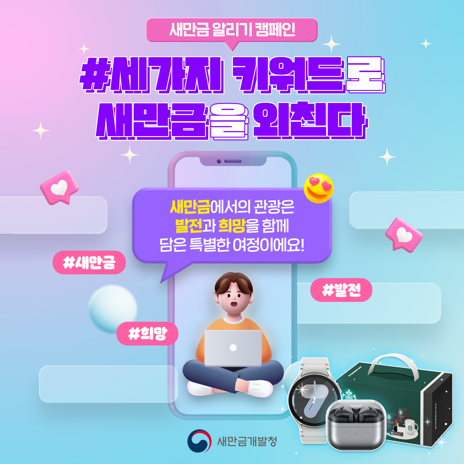 '새만금', '발전', '희망'을 넣어 새만금을 알려주세요😉