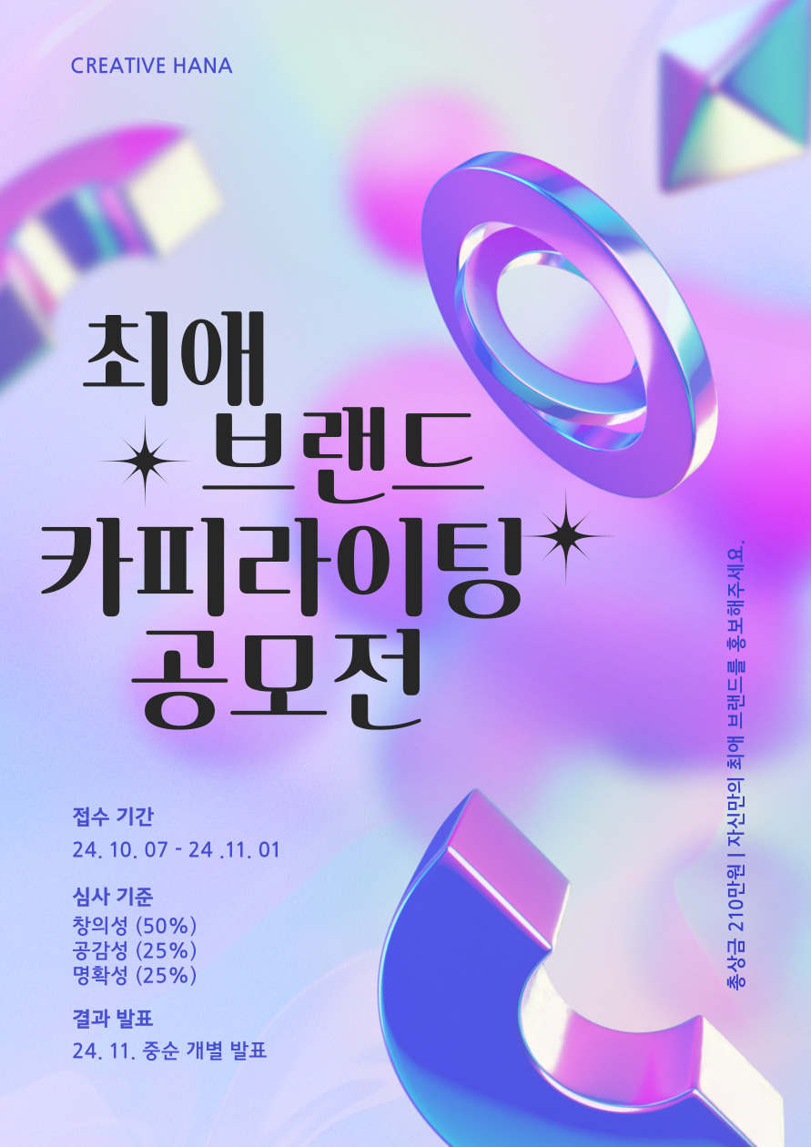 하나기획에서는 '나만의 최애 브랜드'를 홍보하는 카피라이팅 공모전을 진행합니다.