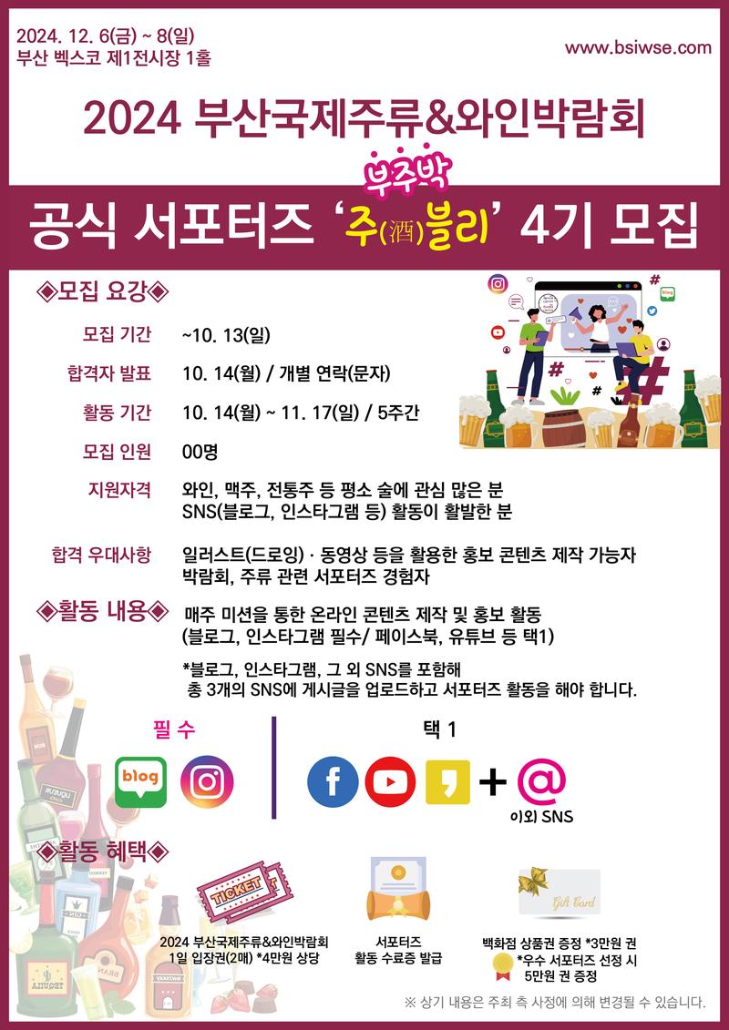 ▶ 활동 혜택: 1) 2024 부산국제주류&와인박람회 1일 입장권 2매 *4만원 상당