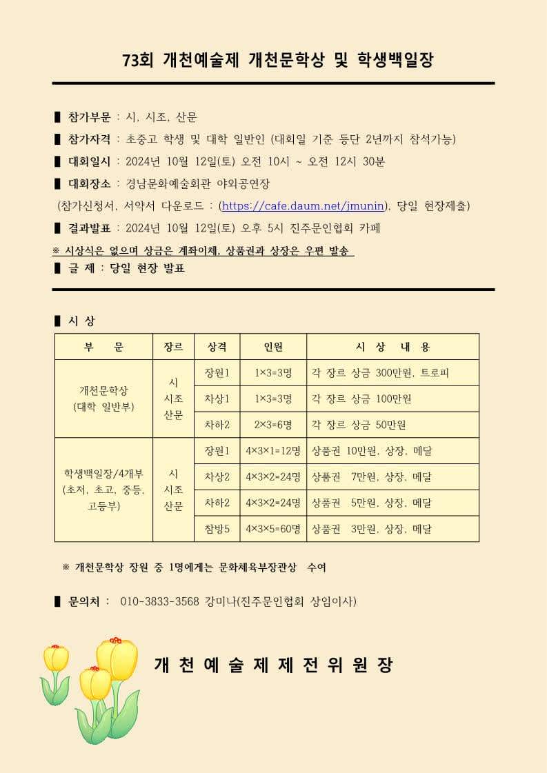 제 73회 개천예술제 개천문학상 및 학생백일장