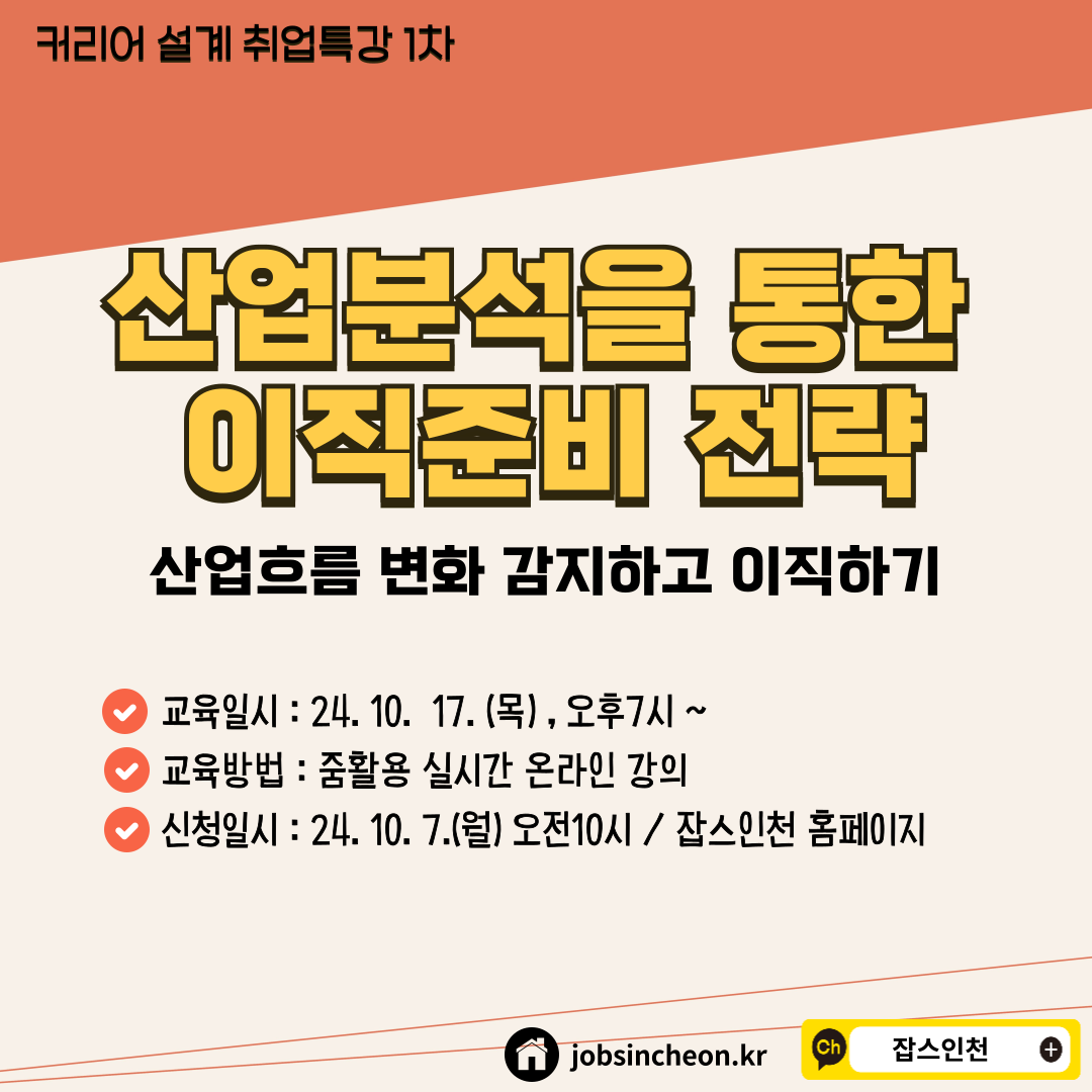 [job's인천]참여자모집_산업분석을 통한 이직준비 전략(10/17)