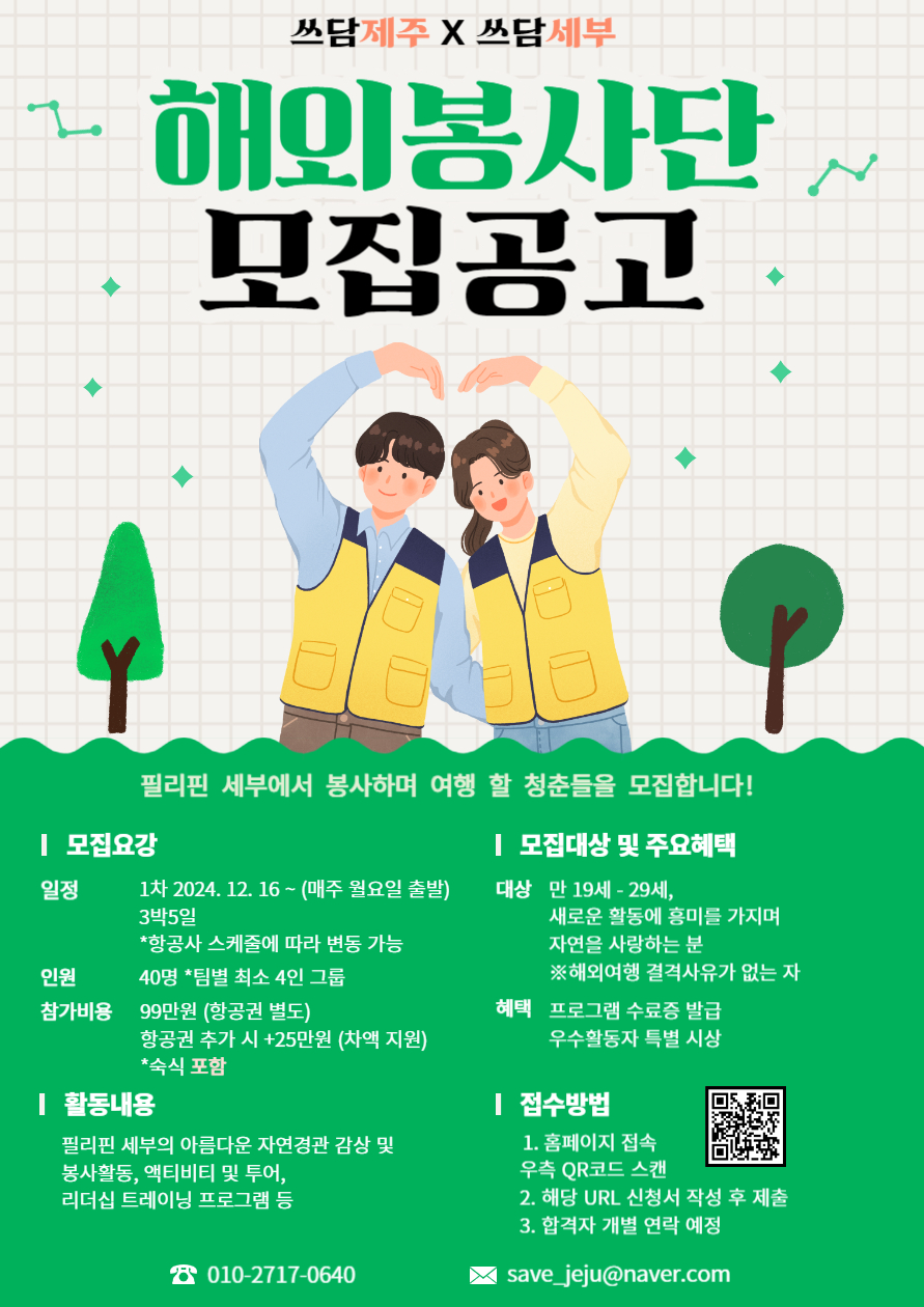쓰담세부 해외봉사활동 참가인원을 모집합니다.