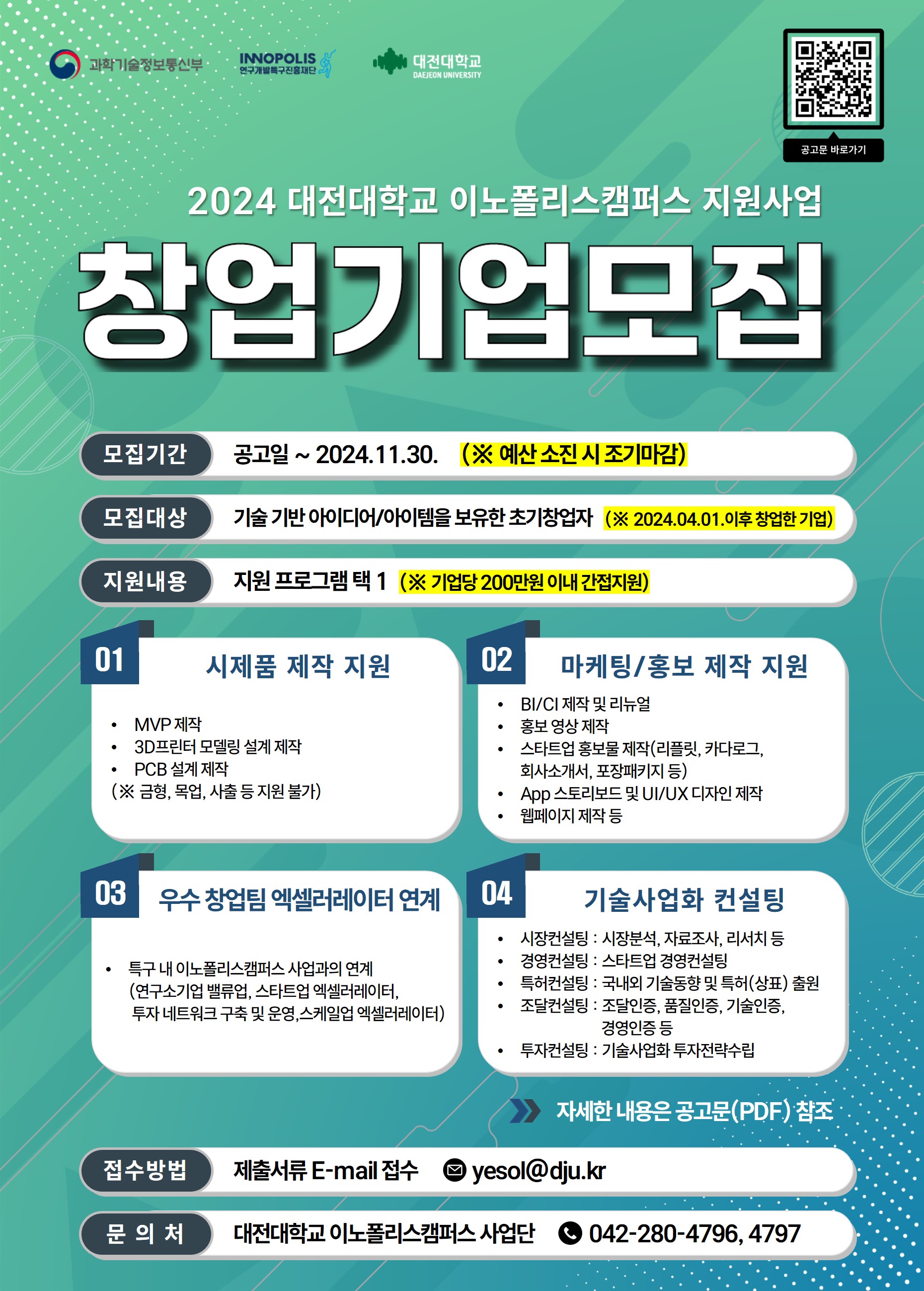 ● 문의처 : 대전대학교 이노폴리스캠퍼스 사업단 (042-280-4796~7)