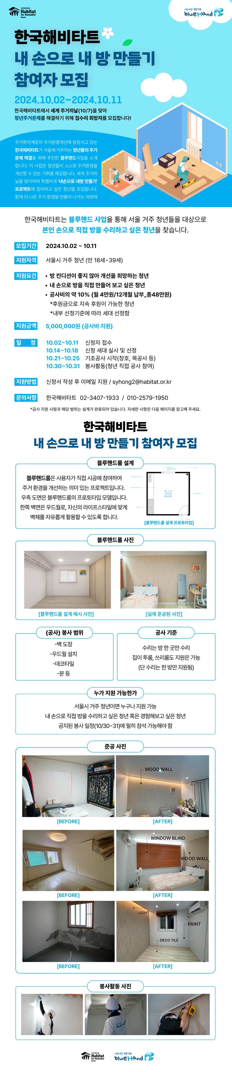 [한국해비타트] 청년주거개선 내손내방 프로젝트 블루핸드 참여자 모집