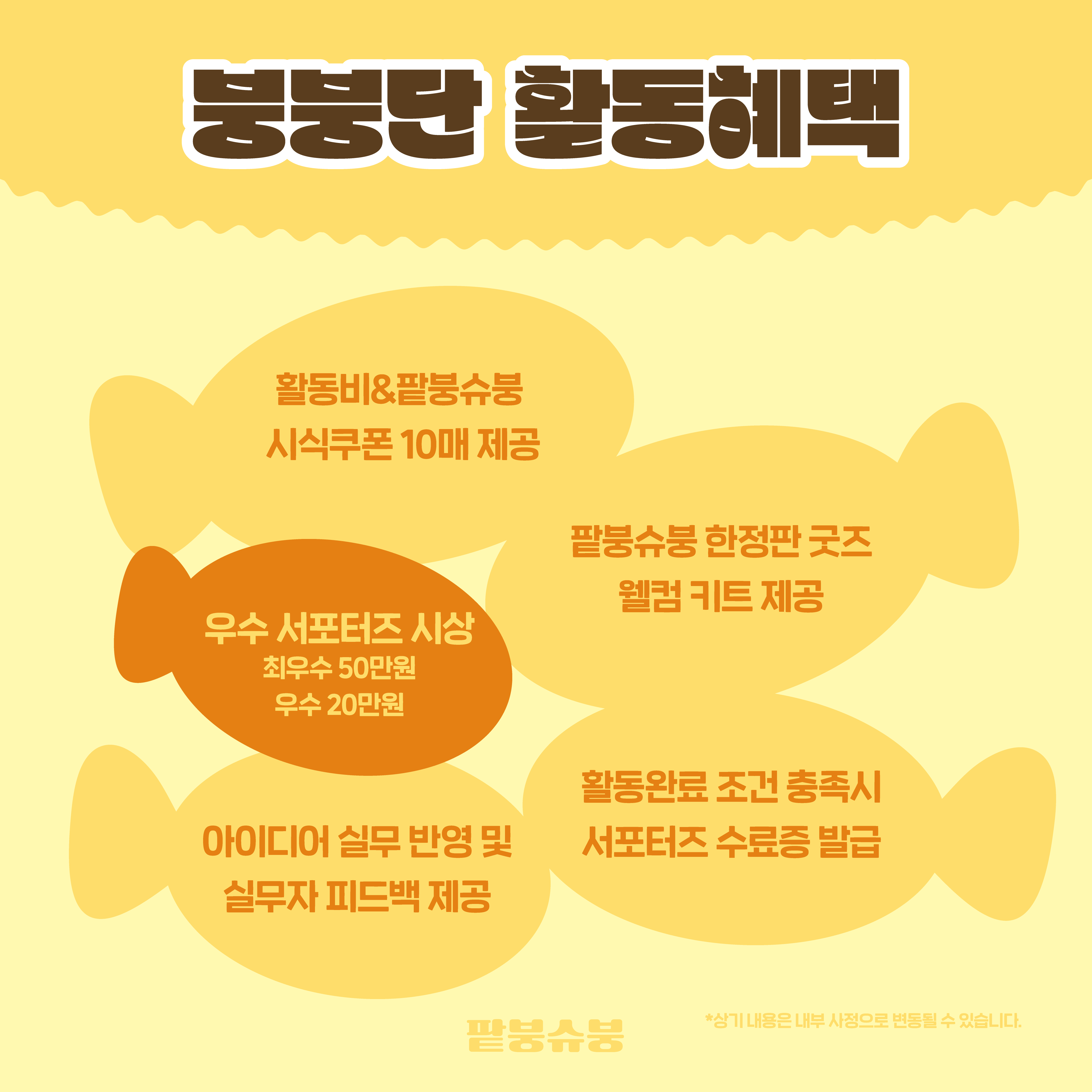 - 활동비 및 팥붕슈붕 시식쿠폰 제공