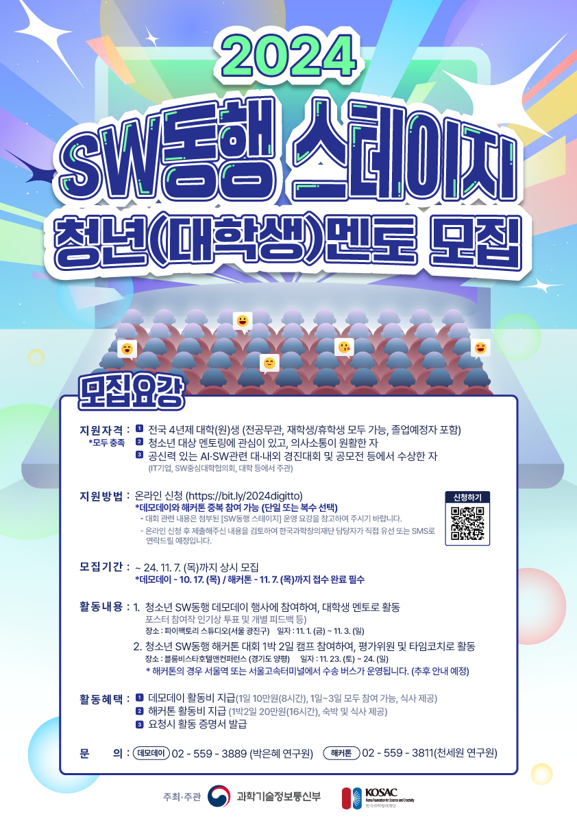 2024 SW동행 스테이지 청년(대학생)멘토를 모집합니다.