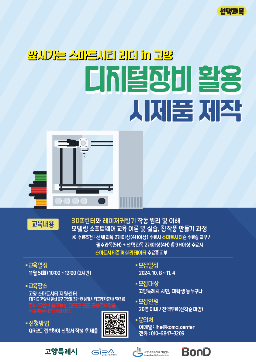 [고양 스마트시티즌교육] 디지털장비 활용 시제품 제작 - 선택과목