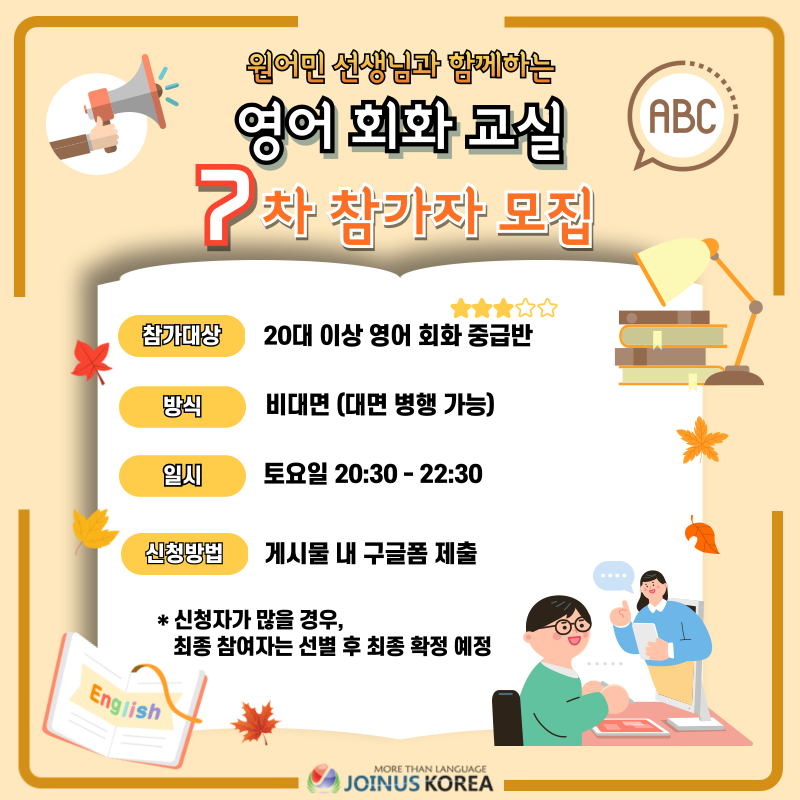 ๐ฅ ์ ์ฒญ ๋ฐ ์ ์ฒด ๊ณต์ง ์๋ด: https://bit.ly/nativeeng7th