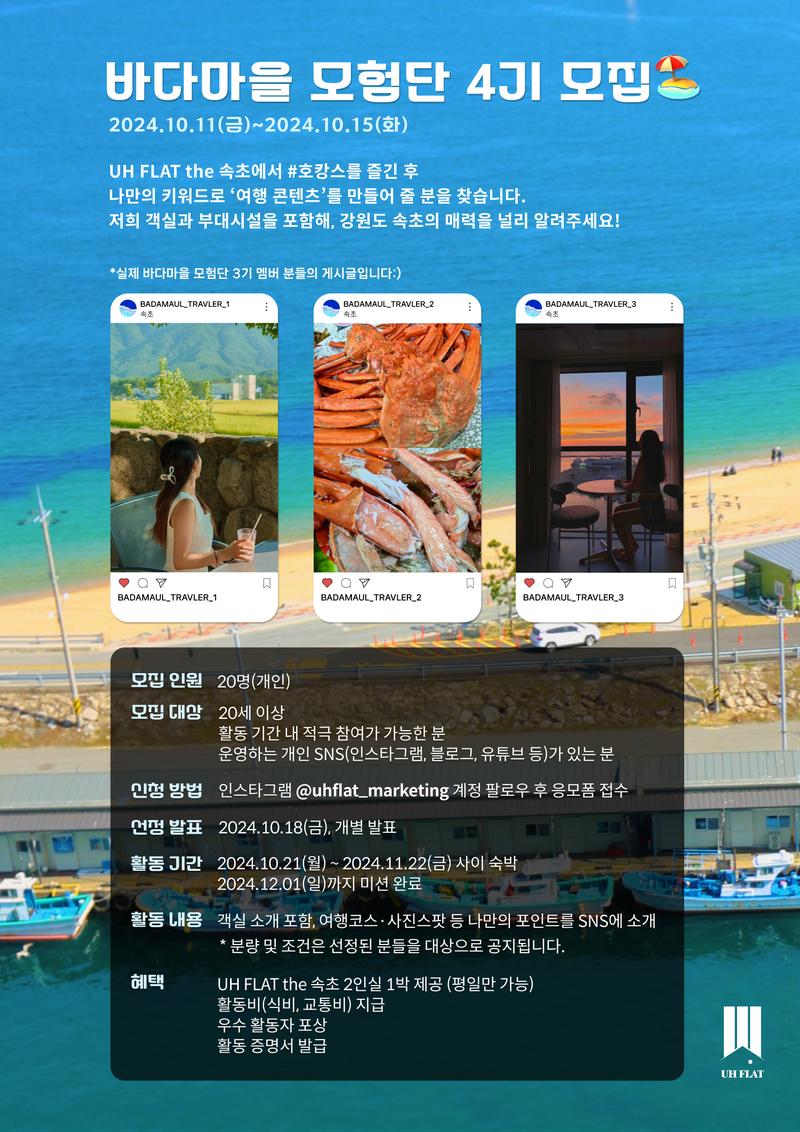 UH FLAT the 속초에서 호캉스를 즐긴 후 나만의 키워드로 여행 콘텐츠를 만들어 줄 분을 찾습니다.