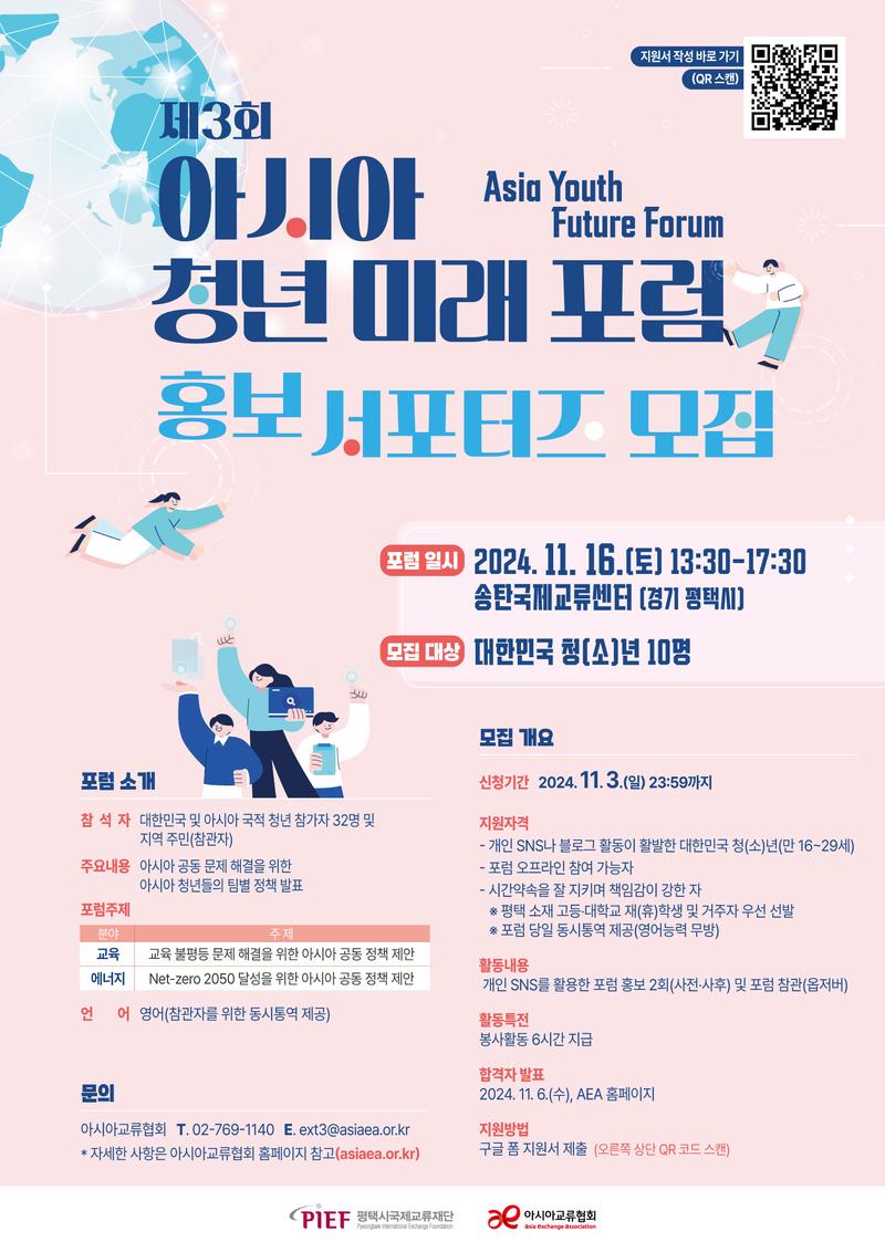 [평택시국제교류재단/아시아교류협회] 제3회 아시아 청년 미래 포럼 서포터즈 모집