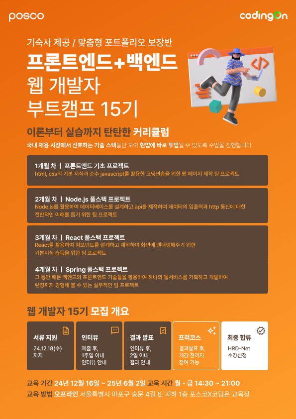 [포스코x고용노동부x코딩온] 프론트엔드+백엔드 웹 개발자 과정 15기