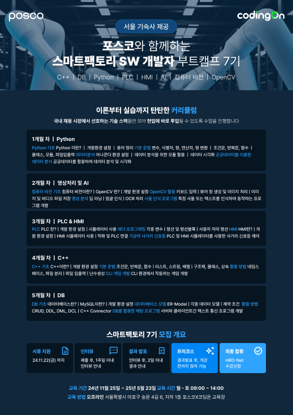 [포스코x고용노동부x코딩온] 스마트팩토리 SW 개발자 부트캠프 7기