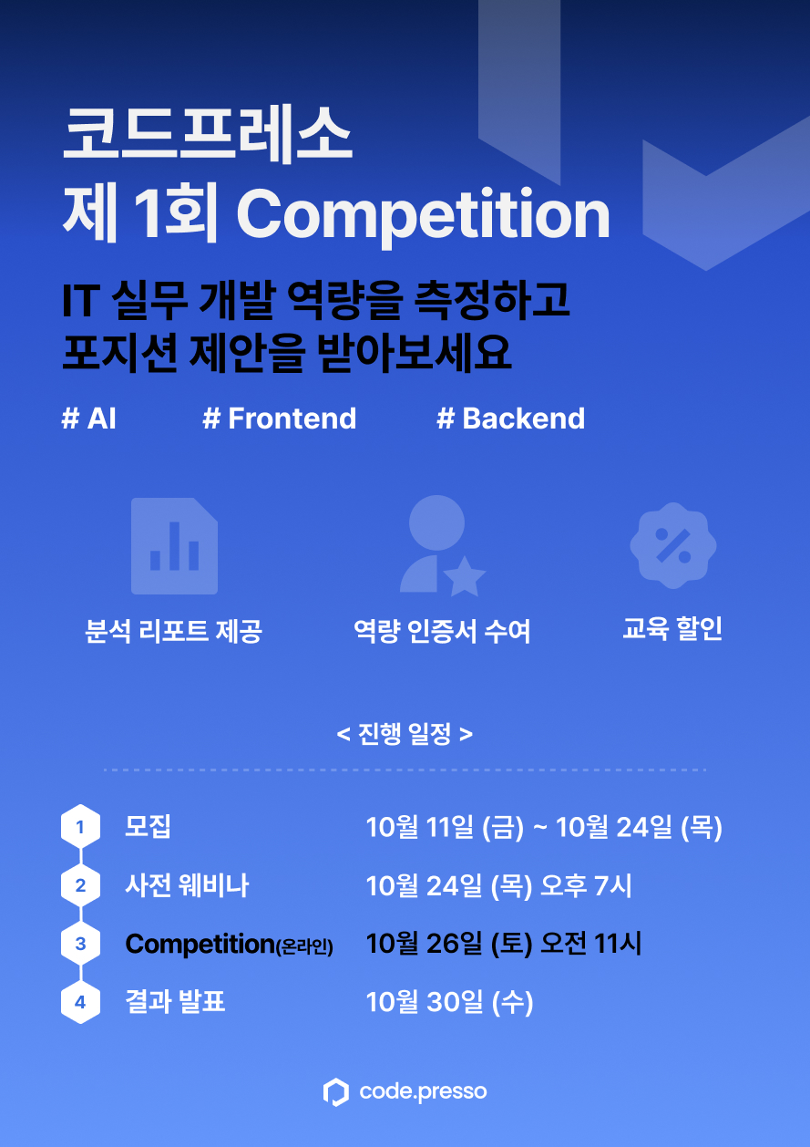🏅 역량 인증서 제공: 컴피티션 우수 참여자는 공식 역량 인증서를 발급 받으실 수 있습니다.