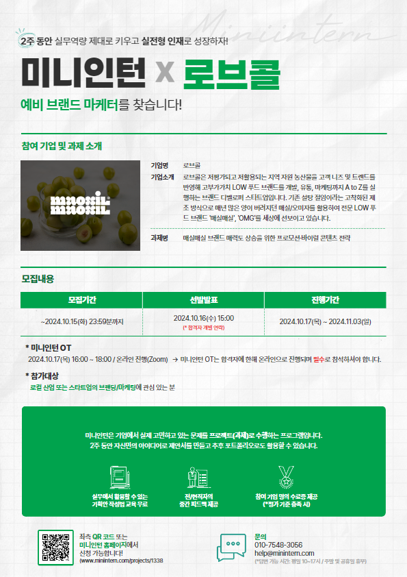 [미니인턴X로브콜] 로컬 브랜드 ‘매실매실’의 인지도 확산 프로모션/마케팅 전략 기획하고 나만의 ‘인생 포트폴리오’ 만들기! (~10/15)