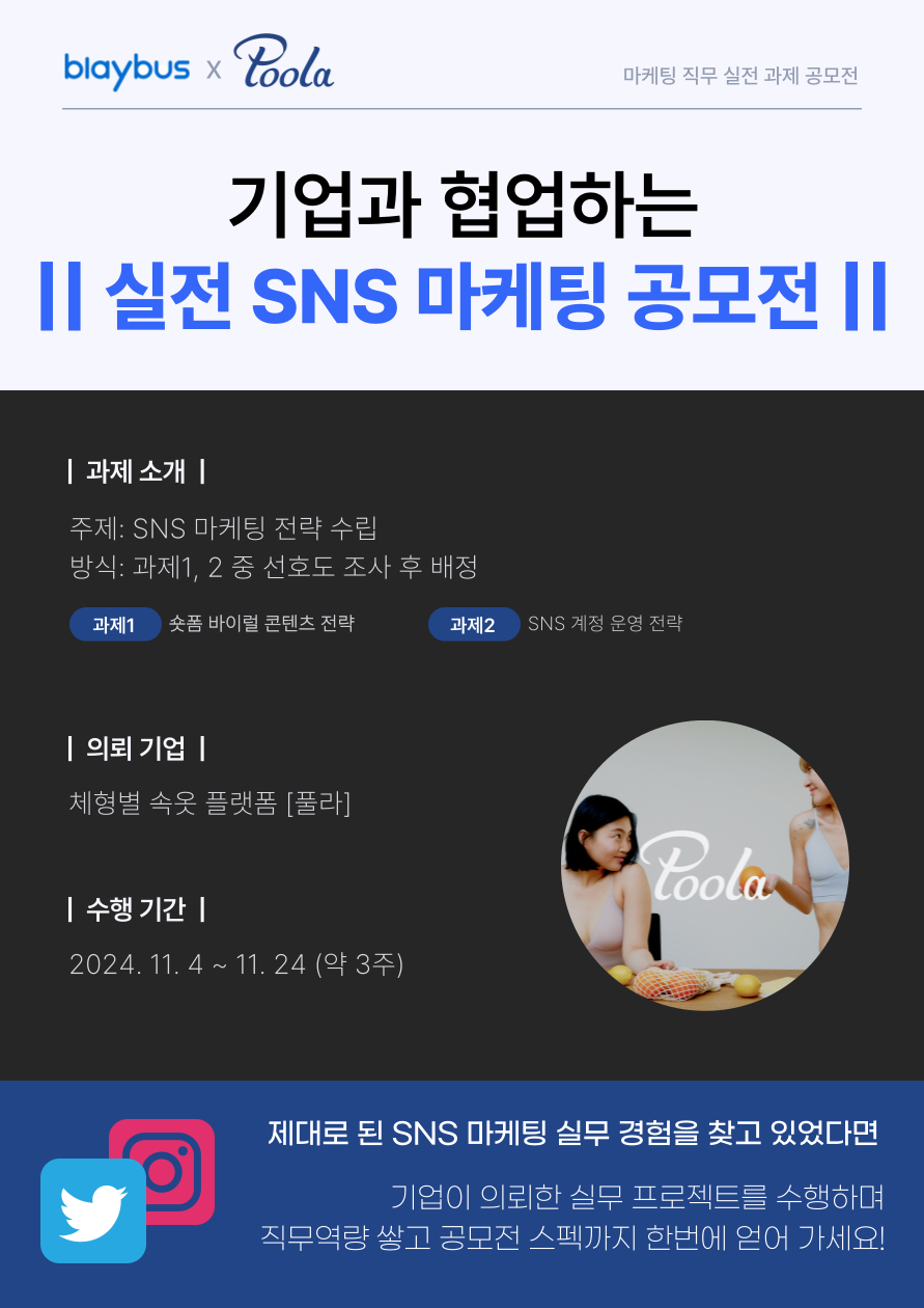 - 의뢰 기업(체형별 속옷 플랫폼 풀라)의 SNS 마케팅 전략 수립