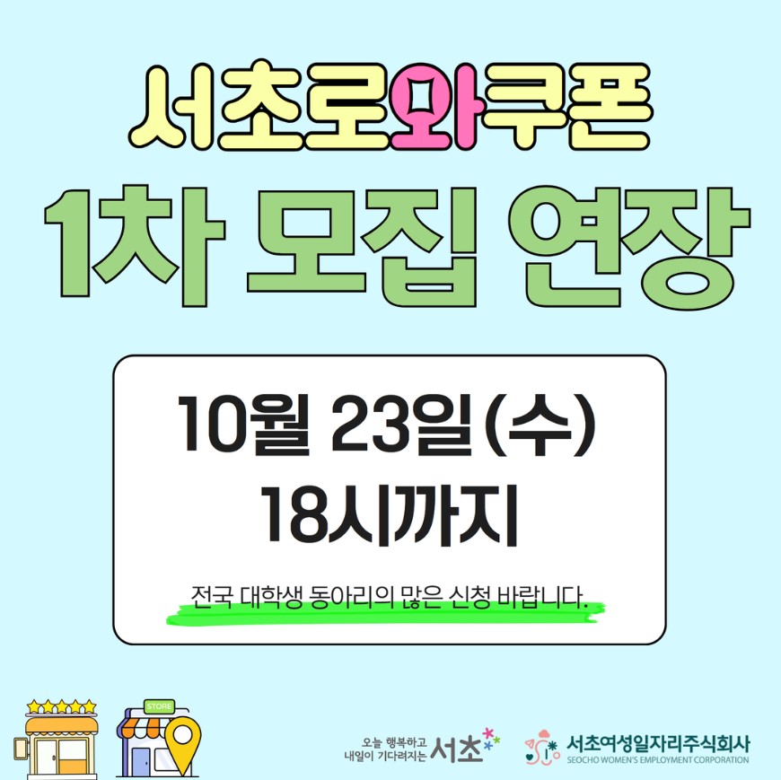 서초구 상권 내에서 사용할 수 있는 <서초로와쿠폰> 사용자를 모집합니다