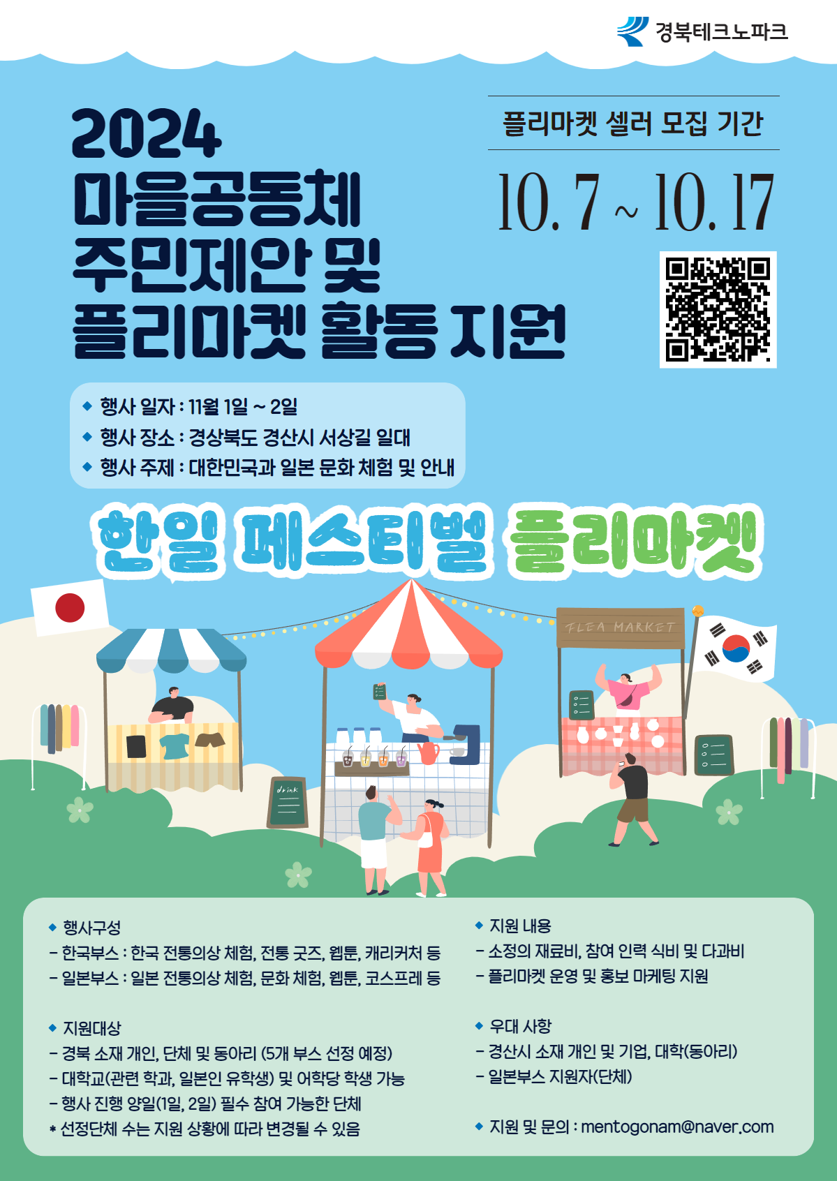 11월 경산 만화 축제와 함께 진행되는 한일 페스티벌 플리마켓 참가자를 모집합니다 ✨