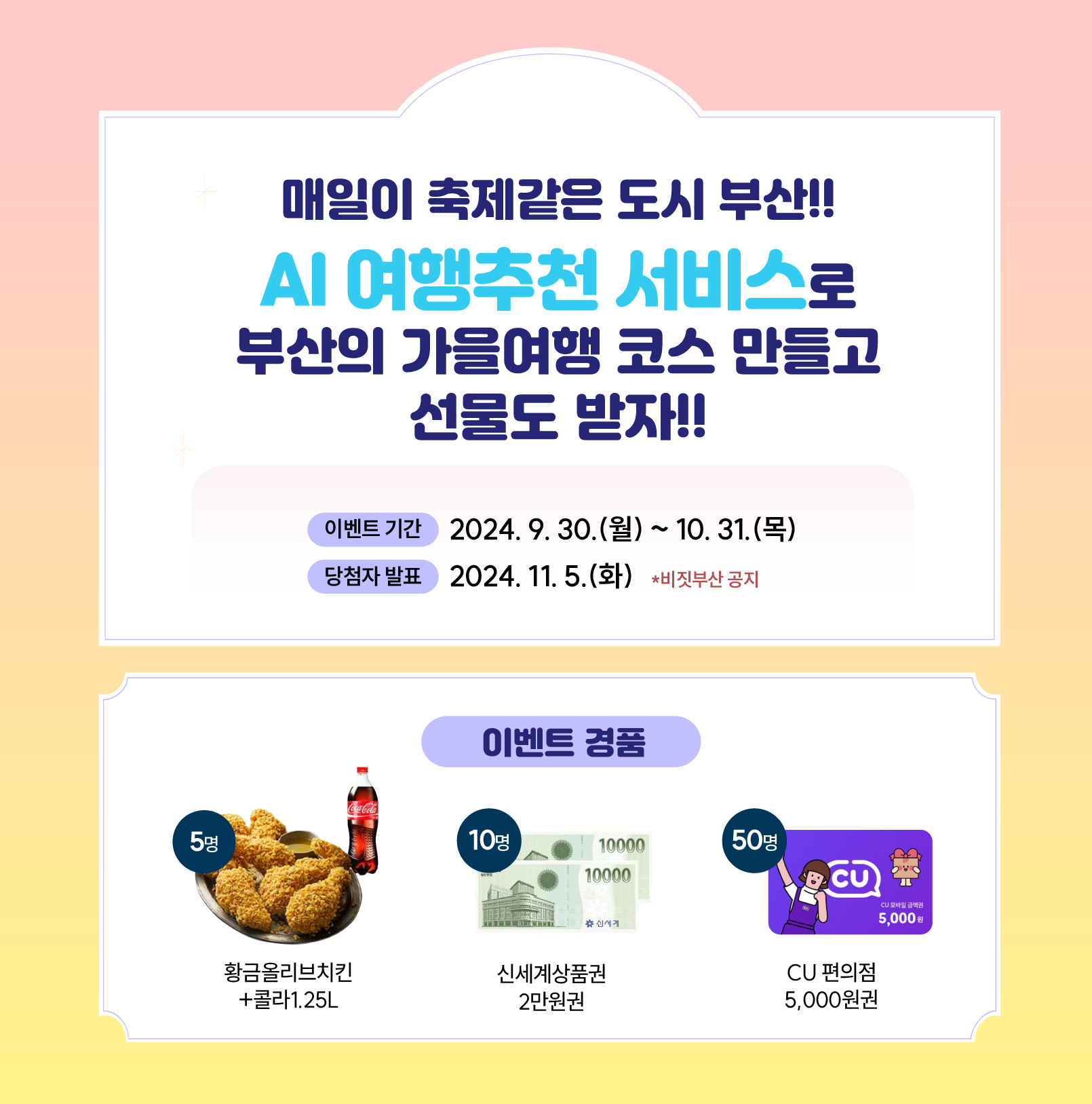 AI 여행추천 서비스로 부산의 가을 여행 코스 만들고 선물도 받자!