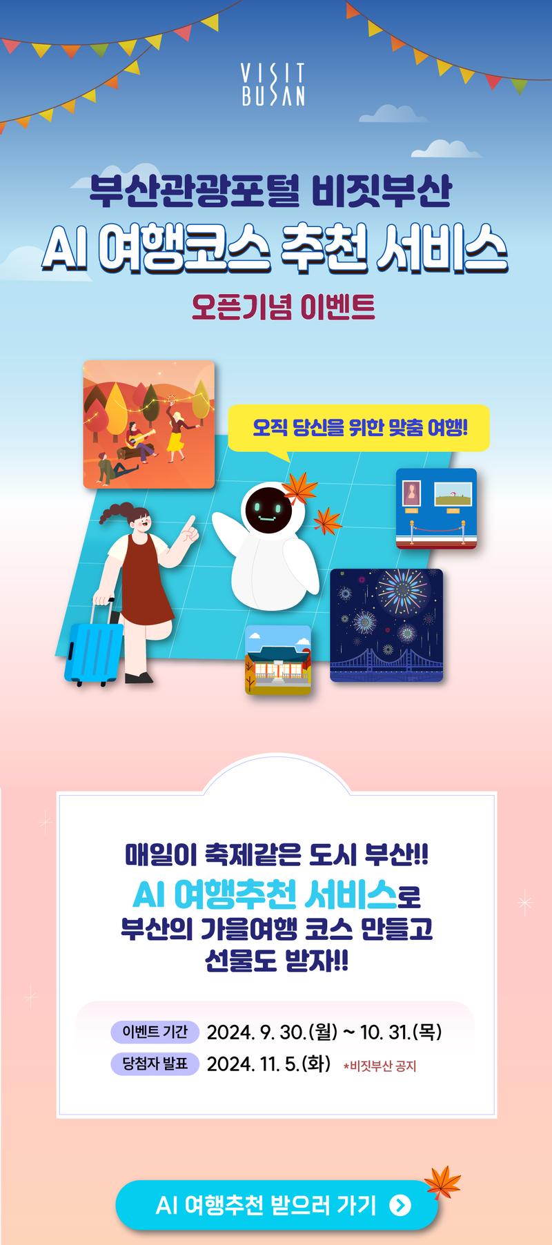 부산관광포털 비짓부산 AI 여행코스 추천 서비스 오픈 기념 이벤트