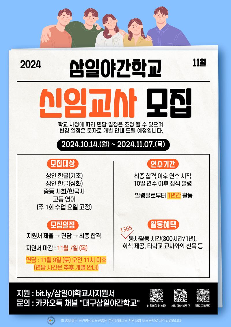 삼일야학과 인생에서 잊지 못할 소중한 경험을 함께 하실 선생님들의 많은 지원을 기다립니다!💖