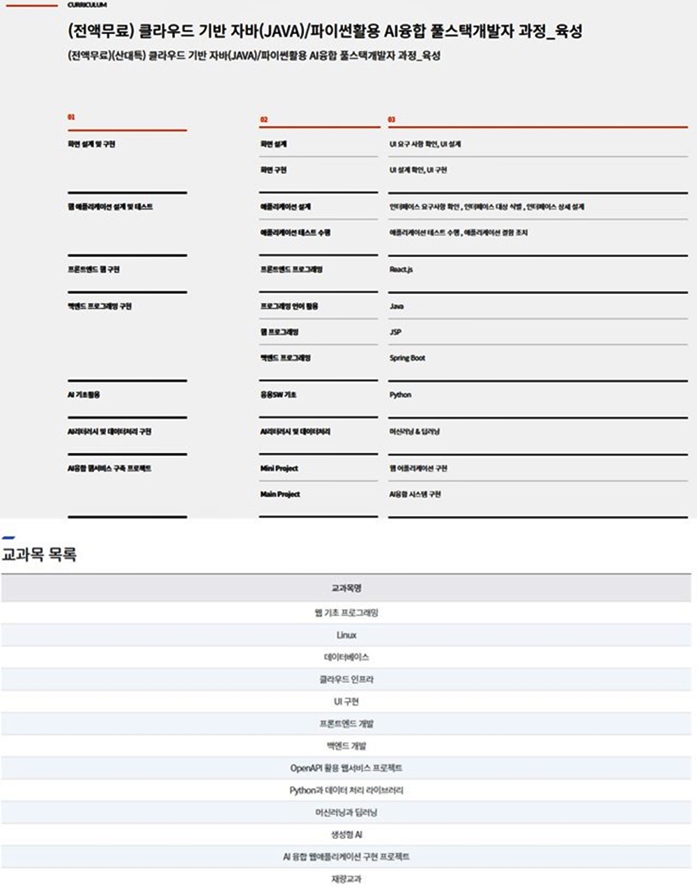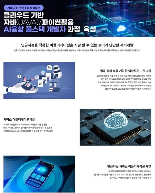 - 클라우드 기반 자바(JAVA)/파이썬활용 AI융합 풀스택개발자 과정 육성