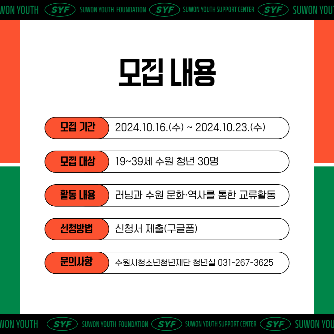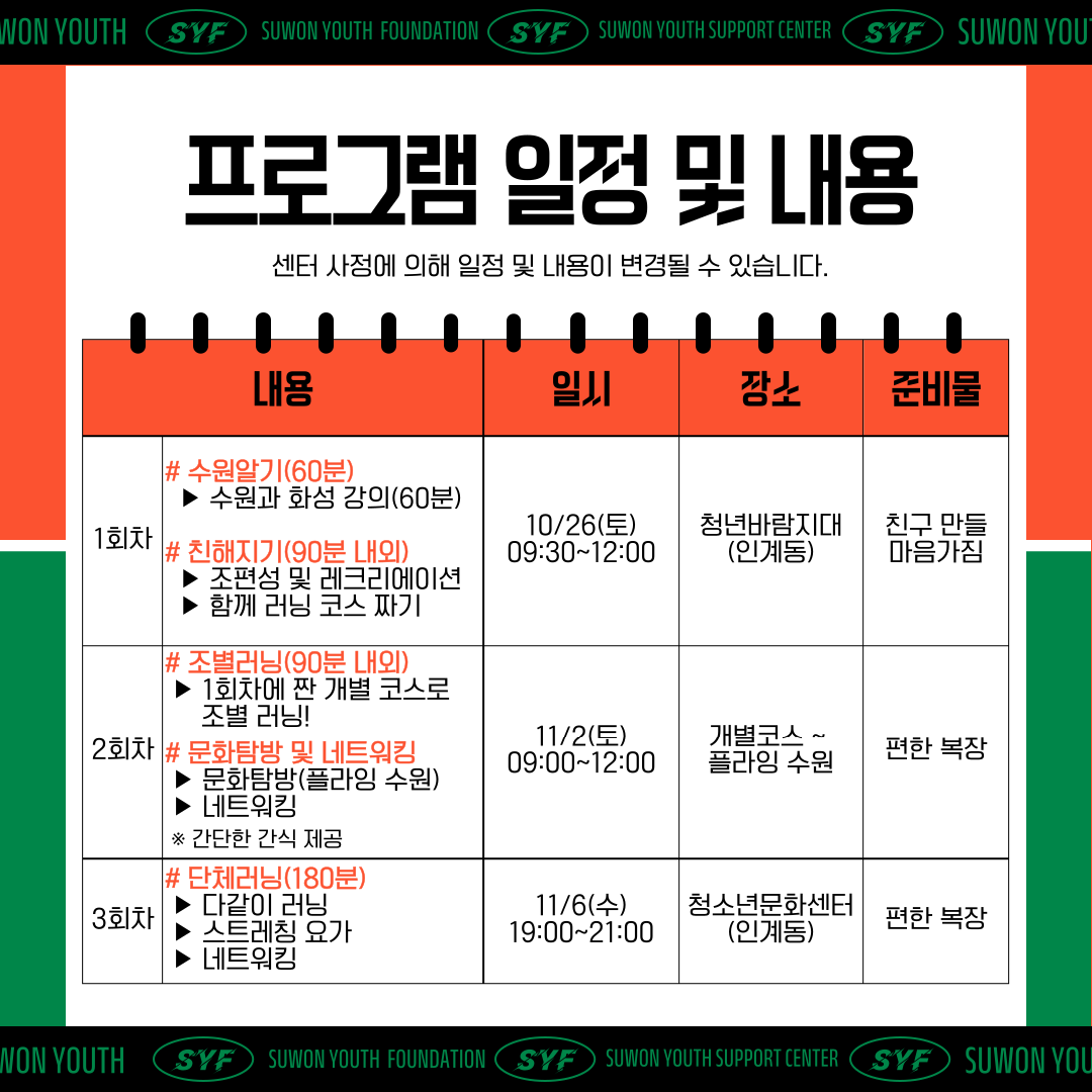 수원을 함께 알아가며 러닝을 통해 교류하는 프로그램~! 🏃♂️🏃♀️