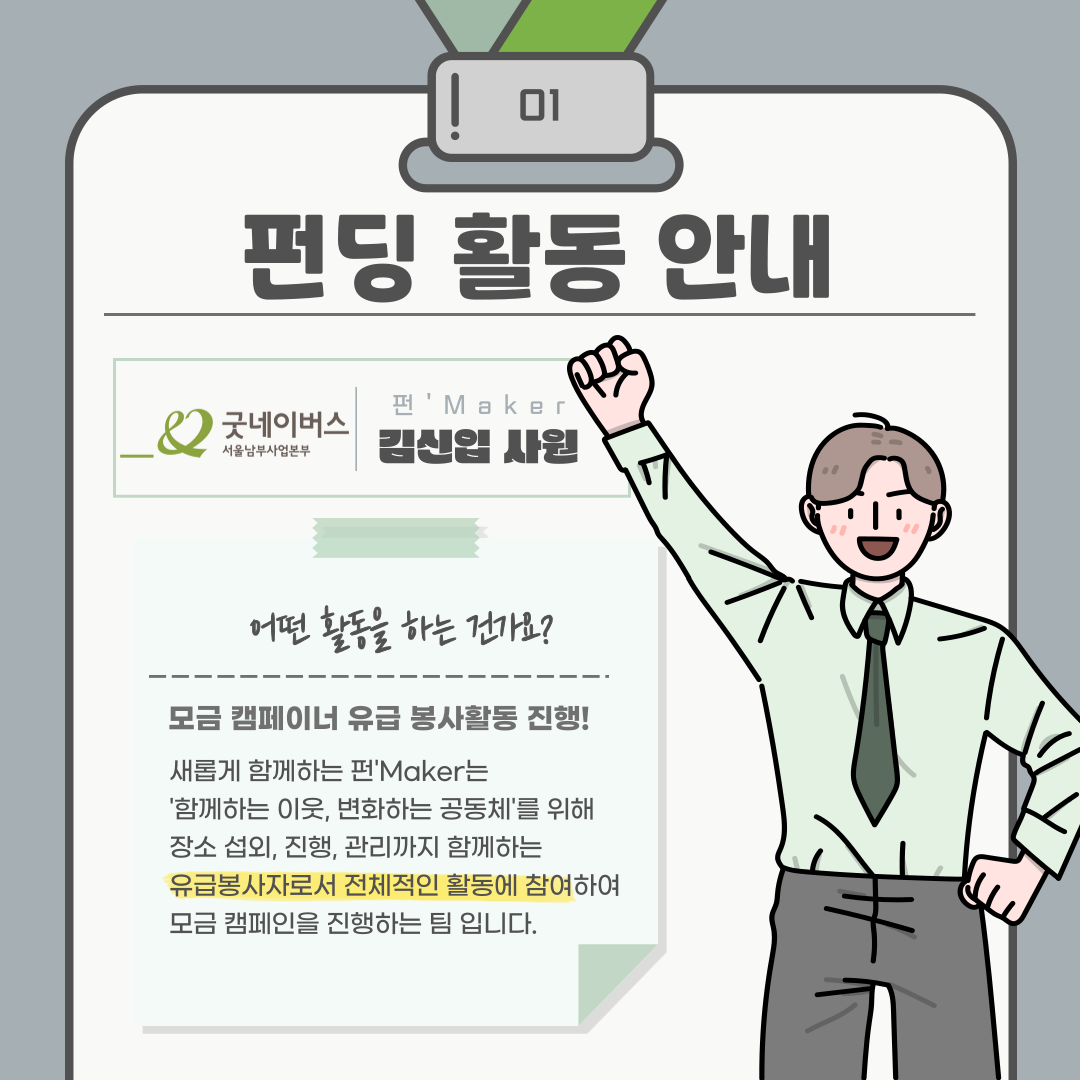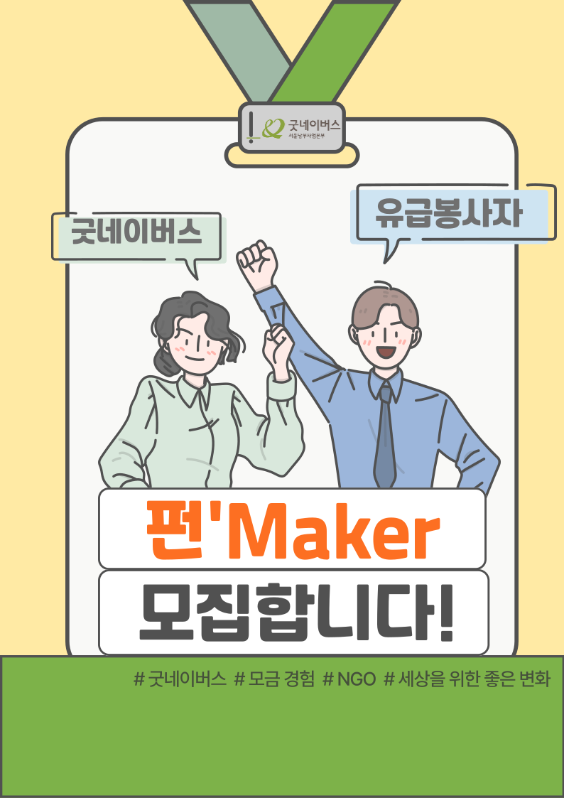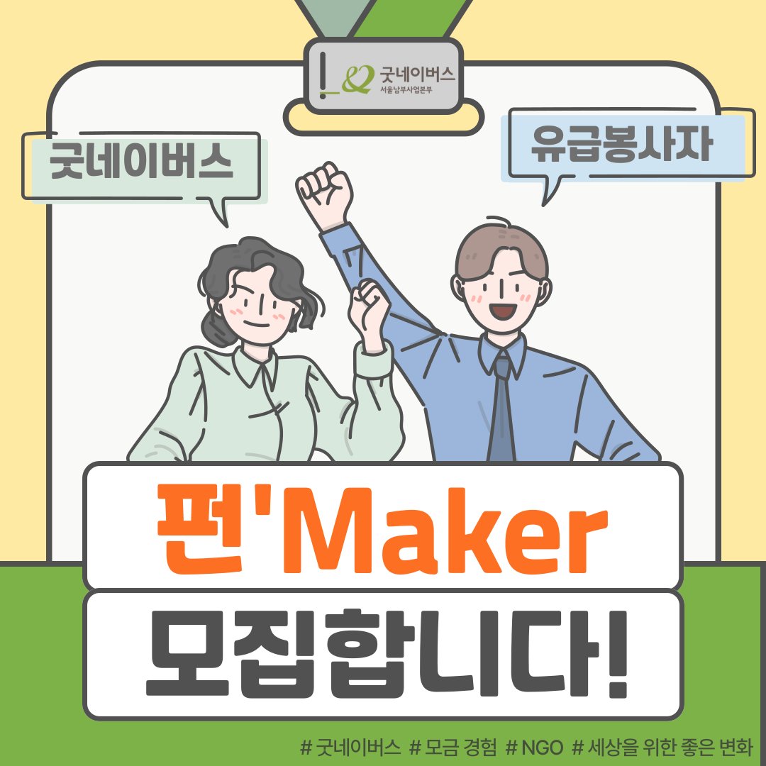 굿네이버스 서울남부사업본부 2024년 유급봉사자 펀'Maker를 모집합니다.