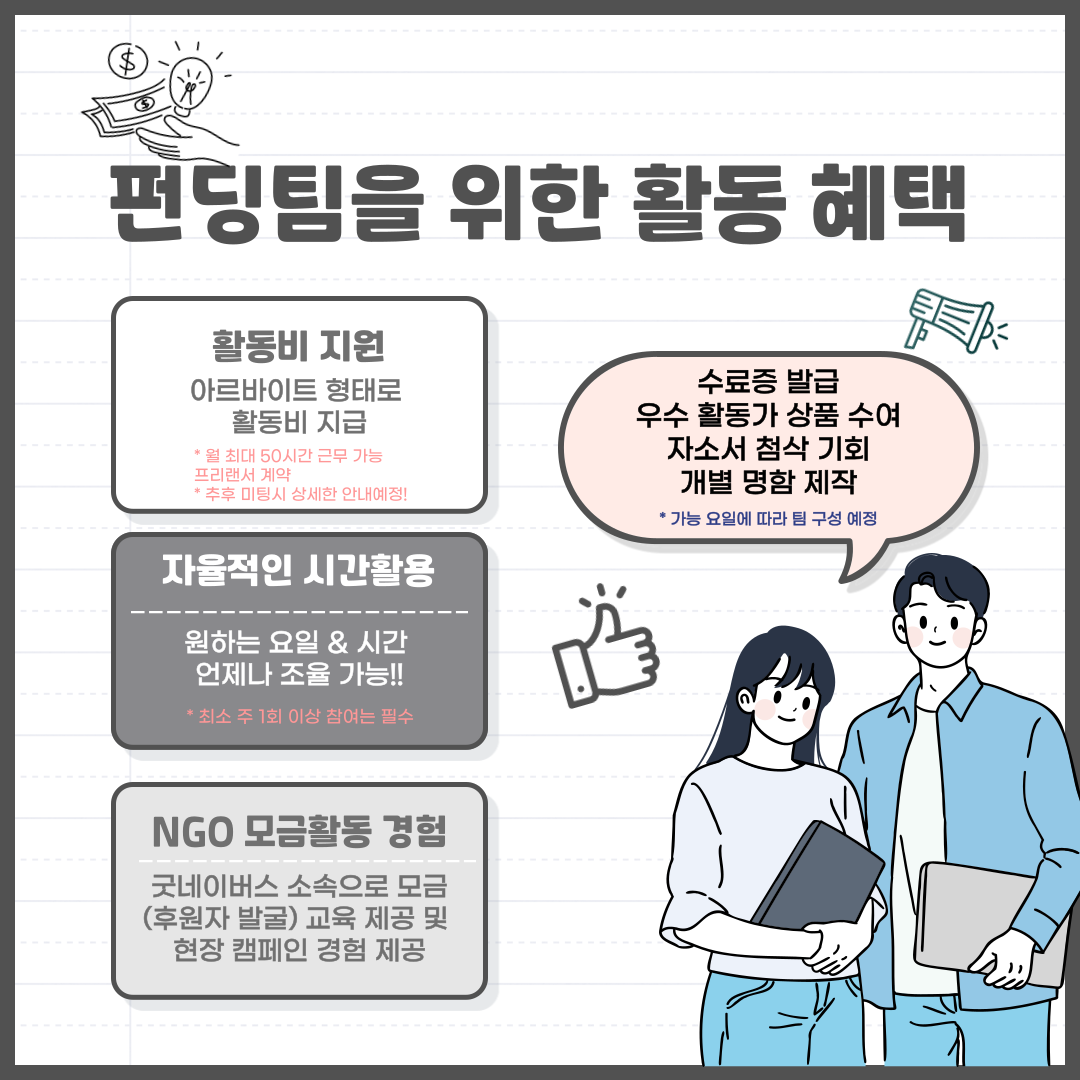 📌지원자격: 주 1회 활동 필수 참여가능자 (일 5시간 이상)