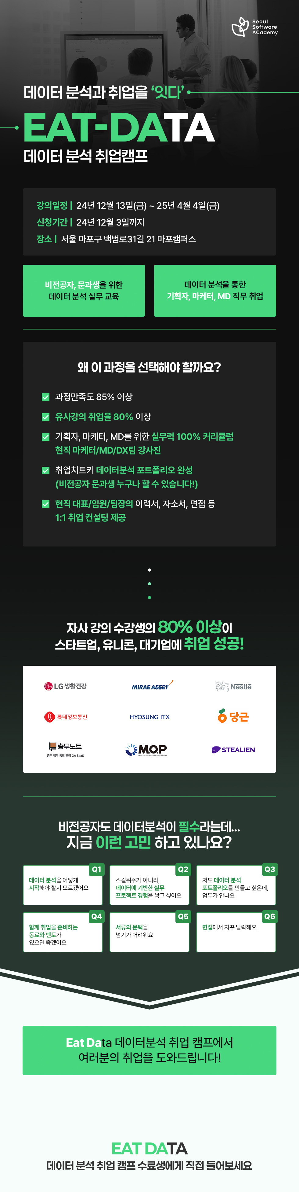 * 과정 적합도가 현저히 낮은 교육생은 수강 중단될 수 있음 (본 경우 예치금 반환)