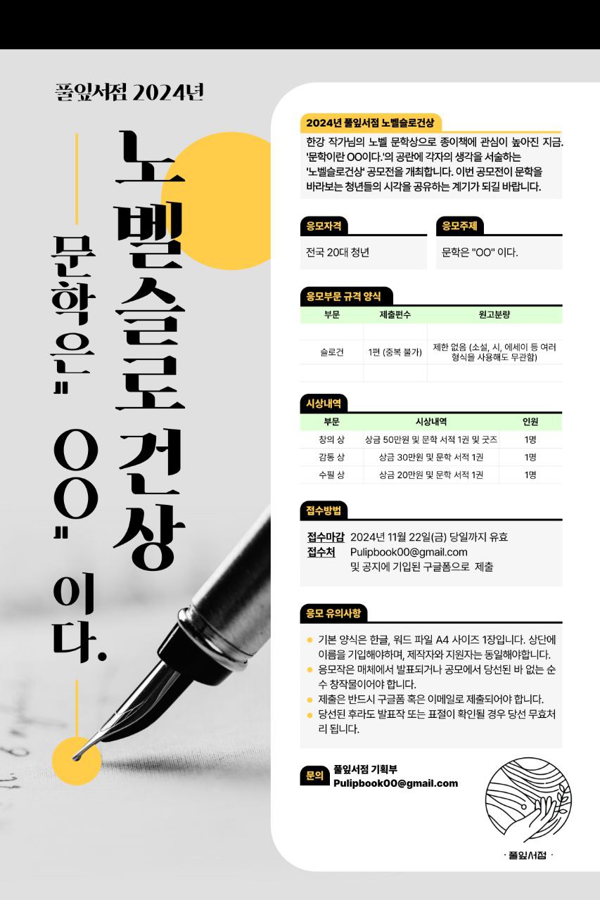 2024년 풀잎서점 노벨슬로건상 공모전