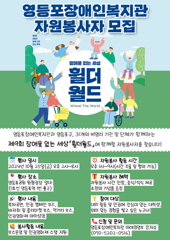 제9회 장애물 없는 세상 「휠더월드」에 함께할 자원봉사자를 찾습니다!