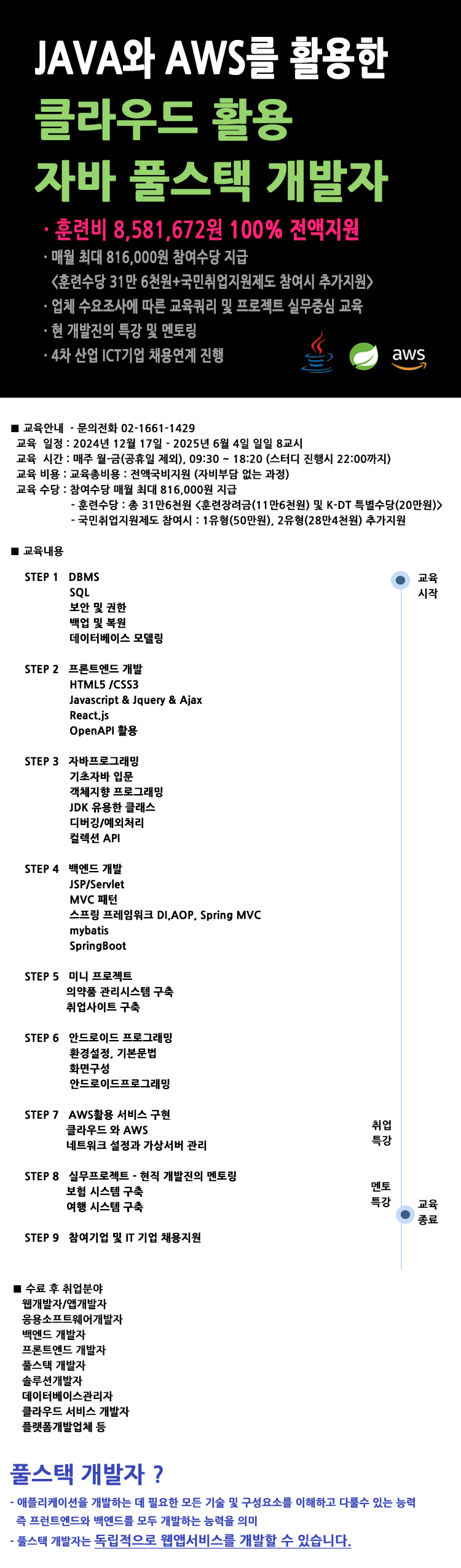[경영기술개발원교육센터] 클라우드활용 풀스택개발자 훈련과정