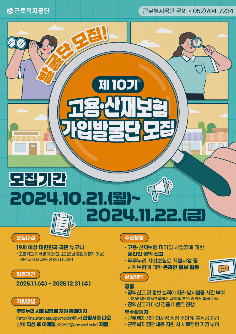 「제10기 고용‧산재보험 가입발굴단」을 공개모집합니다.