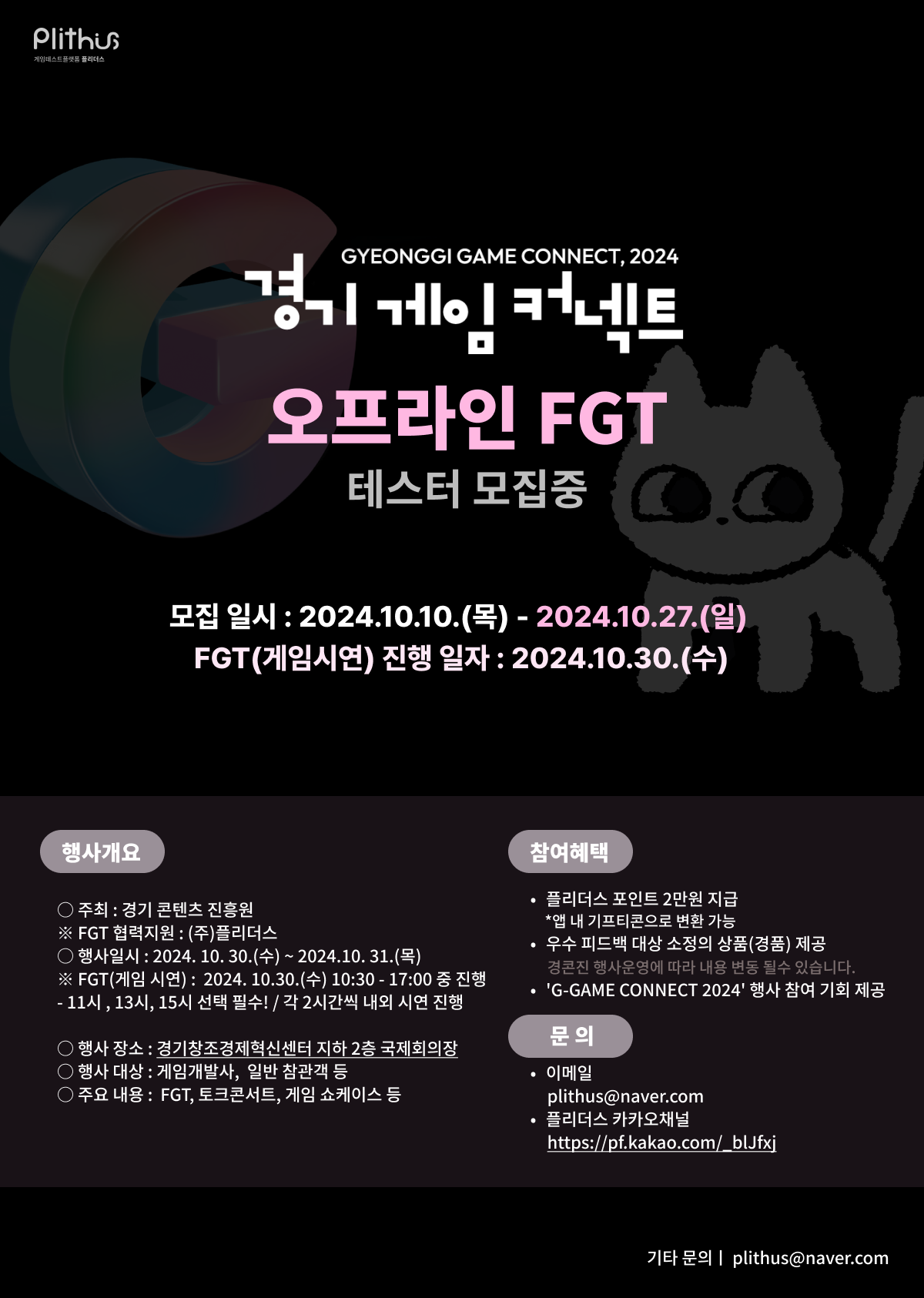 ※ FGT(게임 시연) : 2024. 10.30.(수) 10:30 - 17:00 중 진행